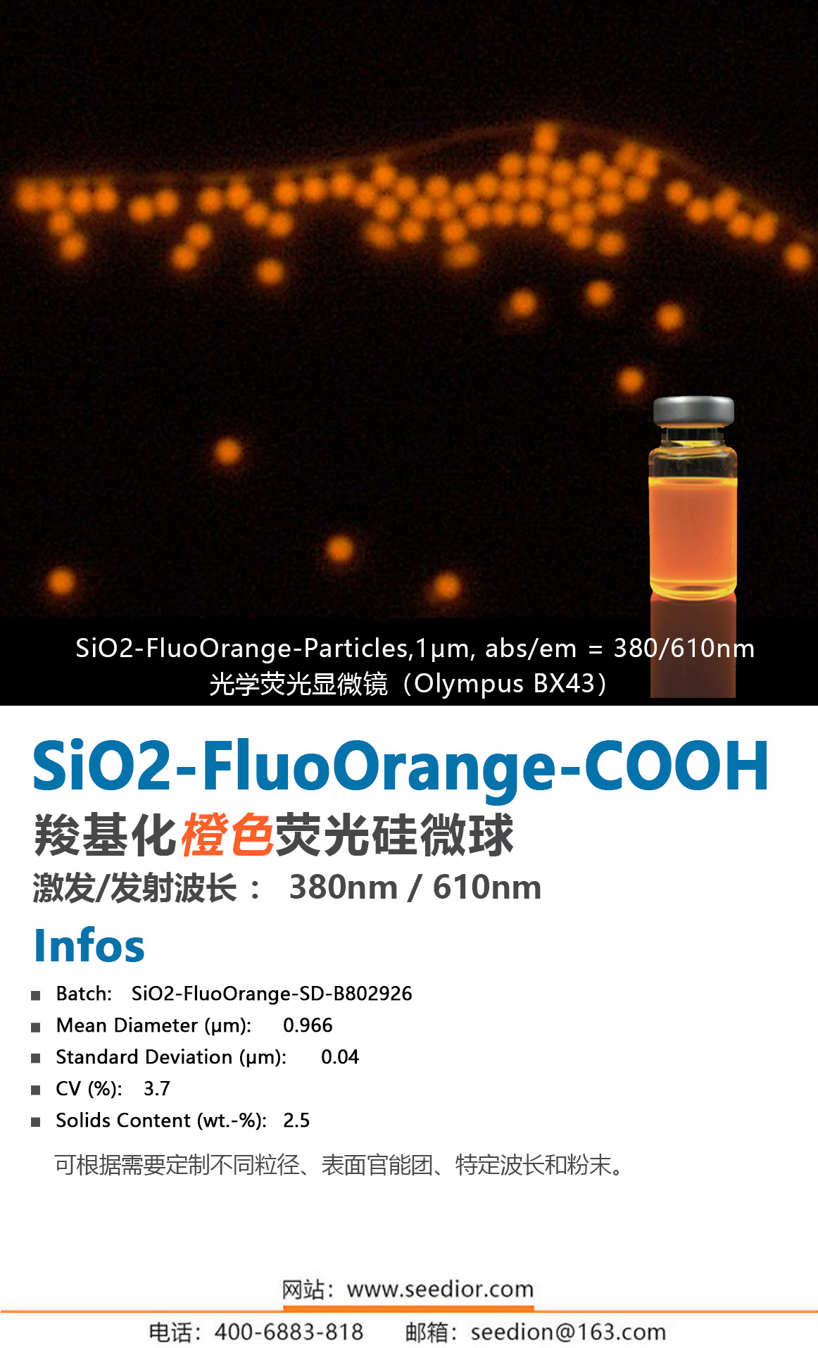 SiO2-fluoOrange-COOH羧基荧光二氧化硅微球 | 羧基化二氧化硅荧光微球 | Ex/Em : 380nm/ 610nmCAS 号: 60676-86-0