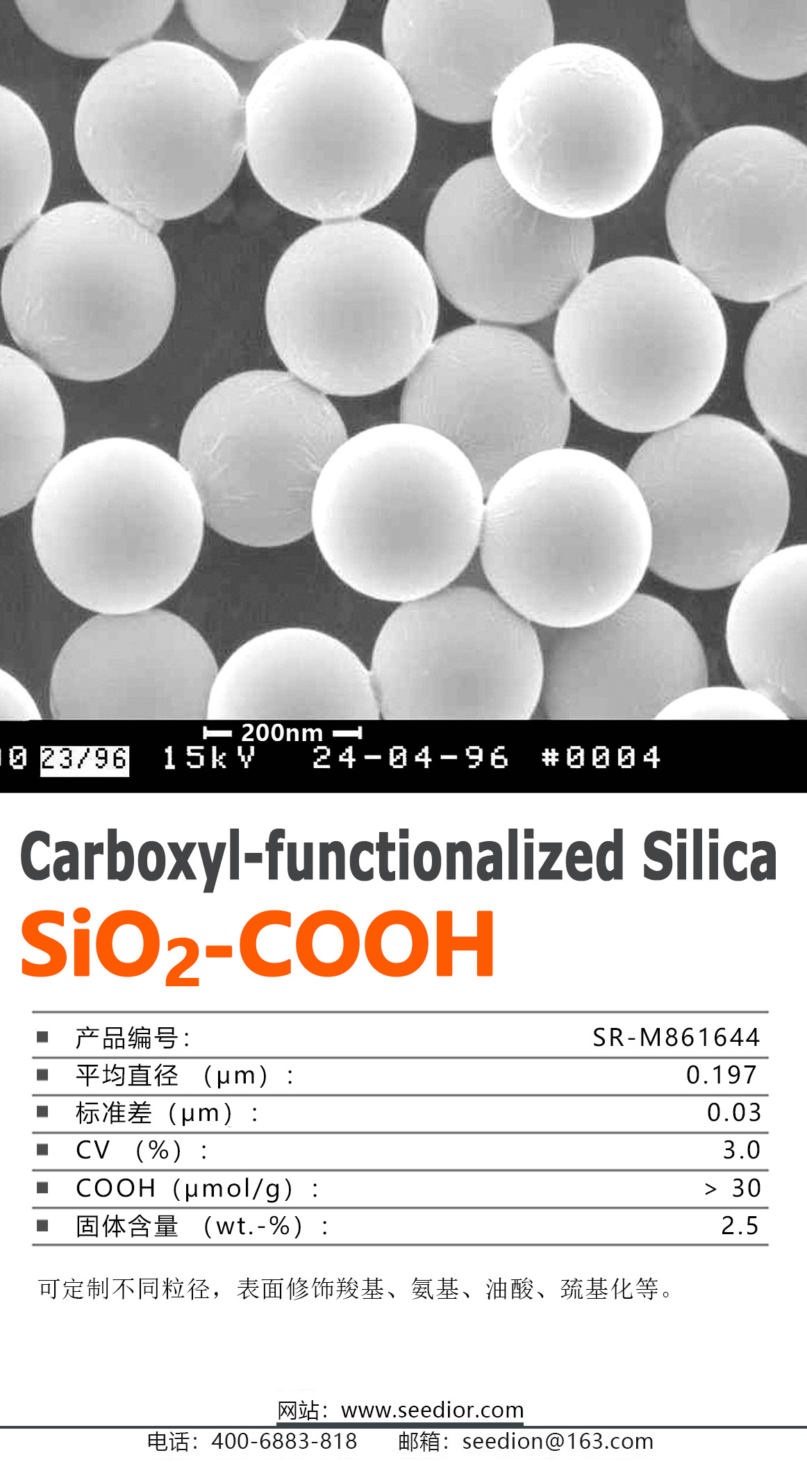 Silica particles, Carboxyl-functionalized | SiO2-COOH羧基二氧化硅微球 | 二氧化硅羧基微球 | APS: 20-1000nm,可定制CAS 号: 60676-86-0