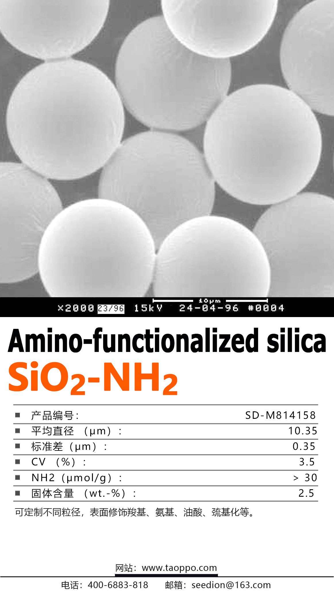 Amino-functionalized silica | SiO₂-NH₂氨基二氧化硅微球 | 单分散二氧化硅氨基微球 | APS: 1 μm-300μm,可定制CAS 号: 60676-86-0