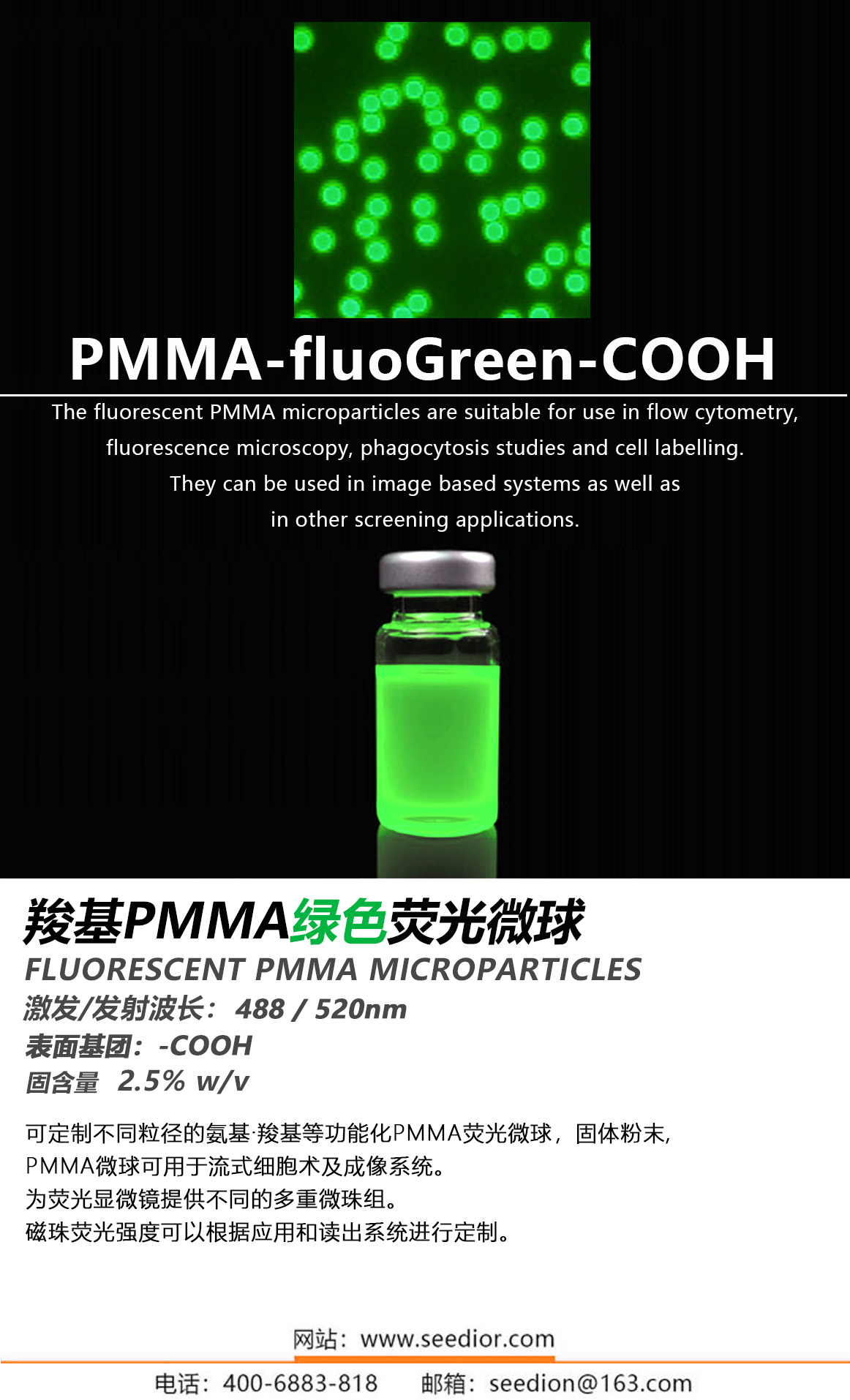 PMMA-fluoGreen-COOH羧基PMMA荧光微球 | 荧光PMMA微球 | 聚甲基丙烯酸甲酯荧光颗粒CAS 号: 9011-14-7
