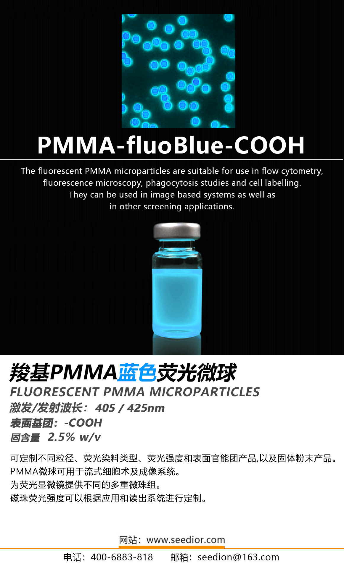 PMMA-fluoBlue-COOH蓝色荧光PMMA微球 | PMMA荧光微球 | 聚甲基丙烯酸甲酯荧光粒子CAS 号: 9011-14-7